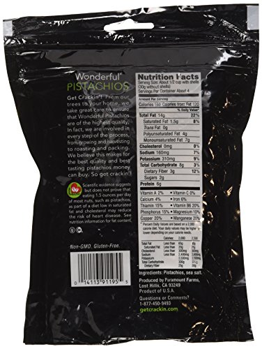 -. Feature : Wonderful Roasted and Salted Pistachios / Packed in a resealable bag for freshness / NON-GMO Project Verified / Ideal for everyday snacking and entertaining / One 8 oz (227g) package