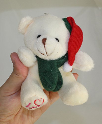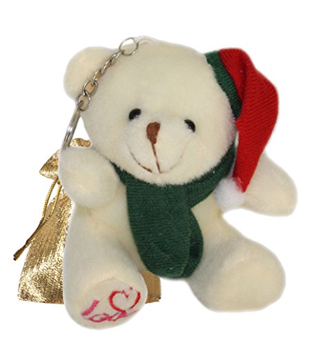 Lucore Santa Claus Teddy Bear Plush Stuffed Animal Keychain - Christmas Hanging Toy Doll, Lucky Charm & Ornament (White)