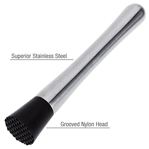 -. Feature : 10-Inch Stainless Steel Mixing Spoon with 8-Inch Cocktail Muddlers, Zapire Brand / Long length for use in taller pitchers, carafes, glass and cocktails.Versatile utensil for any establishment, thin size fits virtually any cup size / Made from high quality ergonomics handle stainless steel handle with highly durable polypropylene head / Essential home bar supplies for any cocktail enthusiast, used for cocktails like mojitos, mint juleps, Do not worry about the presence of bacteria like Wooden / With our sleek stainless steel muddler you can easily reach and muddle all your favorite drink ingredients