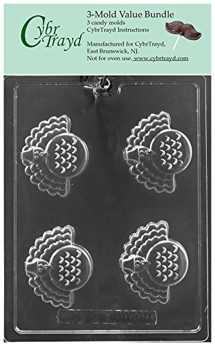 CybrTrayd T044 Turkey Cookie Chocolate Mold (Bundle of 3), Clear