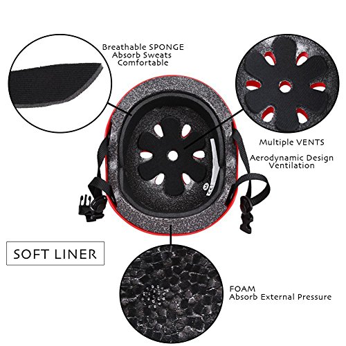 -. Feature : Our interior padding technology wicks away sweat, stench, and bacteria, keeping you dry and irritation-free / Light weight ABS shell & black EPS lining sponge fabric,Soft Inner pads for extra comfort. Adjustable straps and quick release buckle,Adjustable Fit head size / 11 vents for good ventilation & cooling,diverse styles of fashion, hole design more reasonable, more ventilation is suitable, more comfortable / Color: Black, Red. Product Size: 10.6" x 8.8" x 6.8"(26.92cm*22.35cm*17.27) / S: 19.7~20.9"/50~53CM; M: 20.9"~22"/53~56CM; L: 22.8"~23.6"/58~60CM