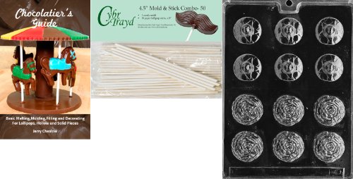 Cybrtrayd 'Carnation Lolly' Fruits and Vegetables Chocolate Candy Mold with 50 4.5-Inch Lollipop Sticks and Chocolatier's Guide