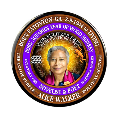 Binding : Apparel Product Description Alice Walker Writer 3" Pin, Astrology Aquarius Zodiac Wood Monkey .This design is 1 of 15 female writers in a set by Valxart. Each button has writers name,place of birth, date of birth and death, astrology sign, zodiac year of birth and a few accomplishments. Look up valxart female writers to find the rest. 0