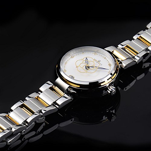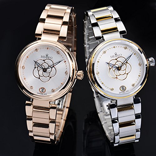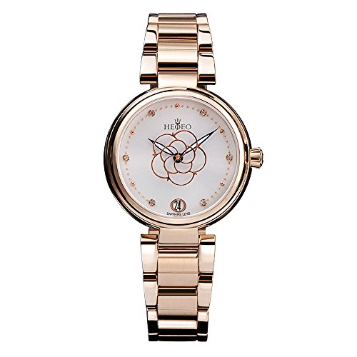 -. Feature : SOPHISTICATED STYLING:rose form second hand,hour hand and minute hand are blue,just like a windy spirit dancing in a gorgeous flower,all about these making the watch as delicacy as a rose. / HIGH GRADE MATERIAL:33.5mm stainless steel case with anti-reflective sappire dial window?ROSE GOLDEN-tone watch featuring with date function,316L stainless steel link bracelet,push button hidden clasp / PRECISE and ACCURATE:Imported Automatic movement with 24 rubies bearing make the the watch more precise and accurate,standard daily second error: -15 ~ +15 / WATER RESISTANT TO 3ATM(30M):that is to say that the watch withstands splashes or brief immersion in water,but not suitable for swimming / WARRANTY:we are the only dealer of HEOJEO,and we promised triple refund in case fake product you were found.