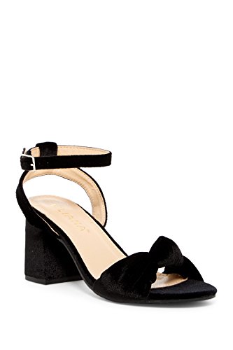 Product DescriptionSizing: True to size. - Open toe - Knot detail - Adjustable side buckle strap closure - Block heel - Approx. 2 5/8" heel - Imported Materials Manmade upper and sole0