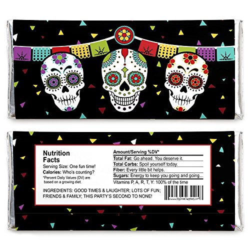 - Day Of The Dead - Candy Bar Wrapper Halloween Sugar Skull Party Favors - Set of 24 wrappers & foils (Candy bars not included)