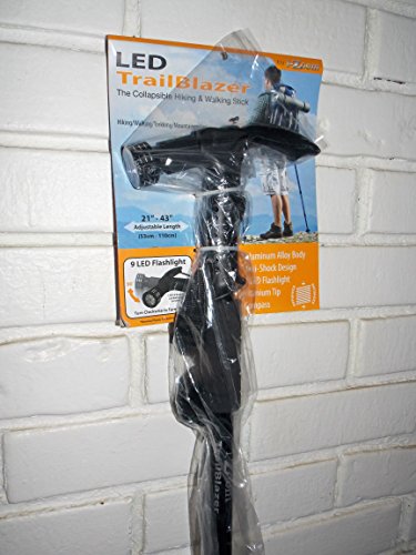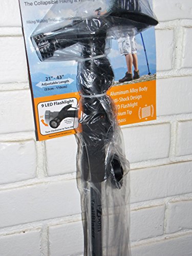 Studio : i-Zoom Publisher : i-Zoom Product Description Whether you are a novice hiker or a seasoned trailblazer, you can appreciate the benefits of using a walking stick. They help increase endurance-no more excuses for opting out of the 6-hour treks. You can climb hills a little easier, balance better, and reduce knee stress. Add an LED light that flashes from the handle, and your path will always be brightly lit. And while the compass may not exactly guarantee you'll never get lost, at least you'll always know where north is. The foldable design lends itself to easy transport. Tuck it away in a bag and have it with you at all times. You never know when the need may arise. Comes in assorted colors as pictured. Features: -Aluminum alloy body ? Anti-shock design ? Includes 9 LED flashlight and compass ? Titanium tip ? Collapsible ? Adjustable length: 21″-43″ ? Requires 4 AG13 button cell batteries (included) 0