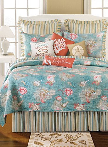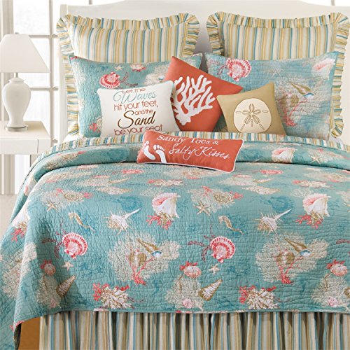 ReleaseDate : 2017-07-01 Studio : CF Enterprises Publisher : CF Enterprises Binding : Kitchen Product Description Enjoy a tropical vacation in the comfort of home with the Santa Catalina quilt. Find yourself dreaming of crystal Blue waters, pink shells, coral, and serene seahorses as you rest peacefully atop a picturesque cotton ground. Reverse to a coastal striped look for additional styling options. Luxury oversized for a larger mattress and machine washable for easy care, this quilt is the perfect addition to your home or beach cottage. 0