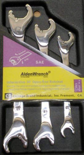 Alden Wrench 56038 Double Head Ratching Open-End Wrench, 3 Piece Set, SAE