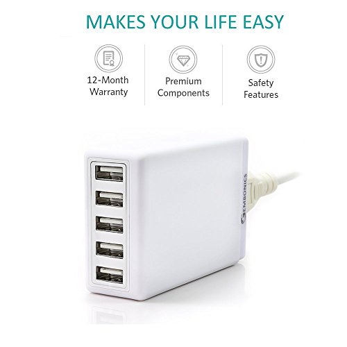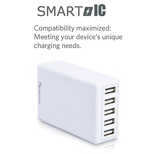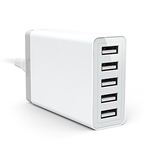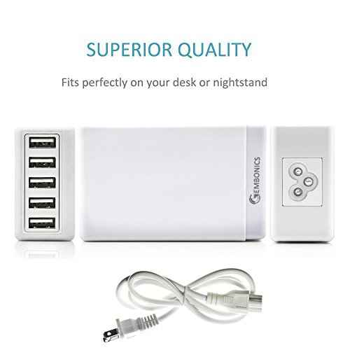 Multi 40W 5 Port High Speed Desktop USB Travel Power Charger, Gembonics 8 Amps Auto Detect for iPhone iPad Samsung Galaxy Tablets Note Smartphones iPods and other USB Charged Devices (White)
