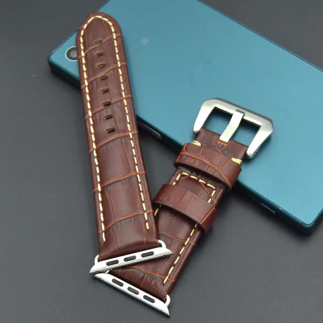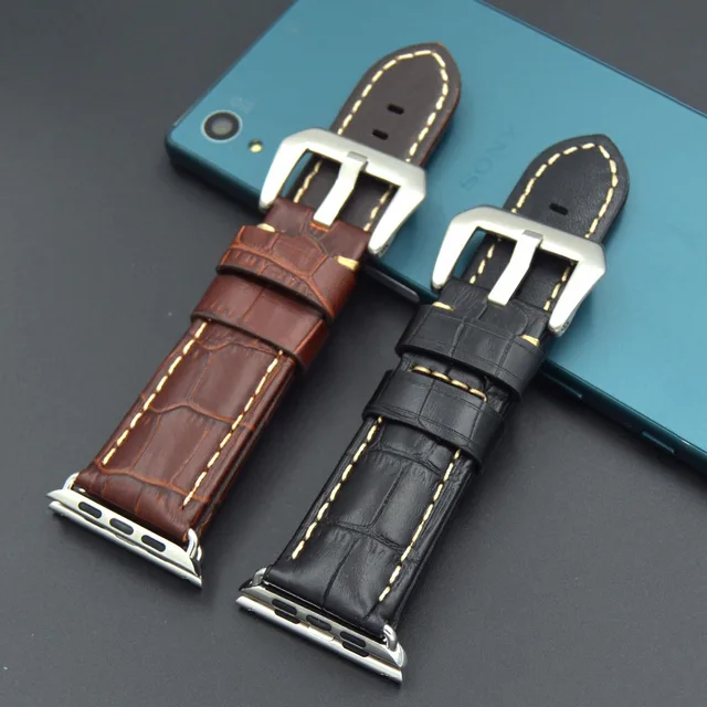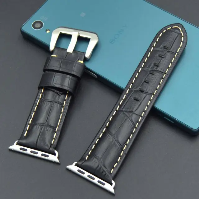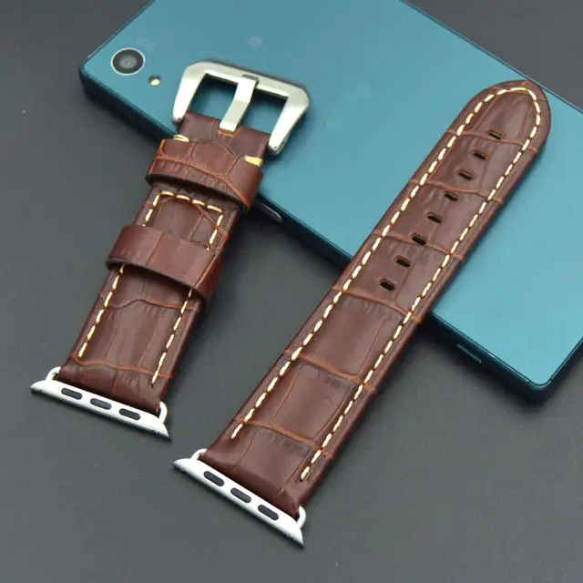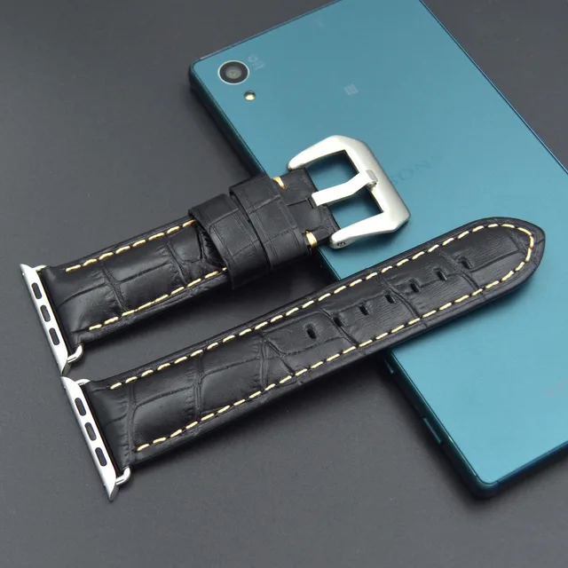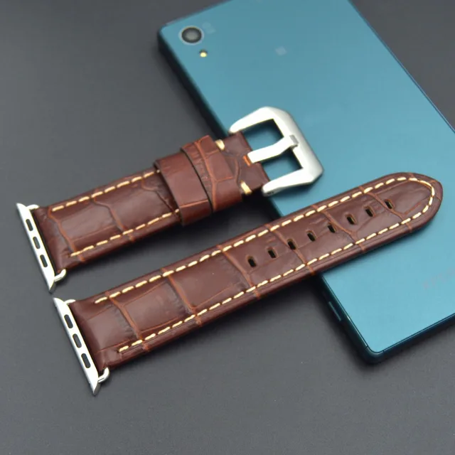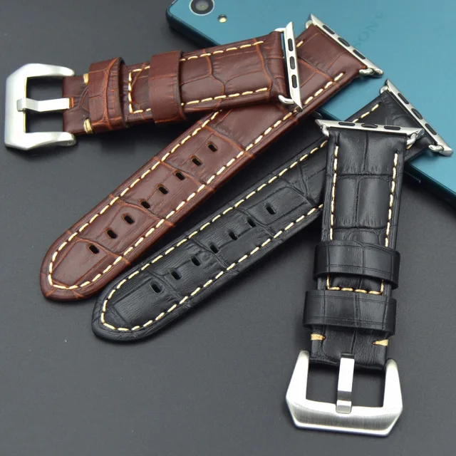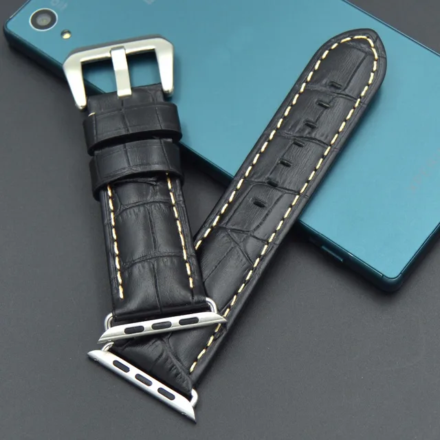 | [해외] 빠른 배송 높은 품질의 38 미리메터 42 미리메터 정품 송아지 가죽 시계 스트랩 큰 스틸 버클 애플 시계 밴드 Iwatch |