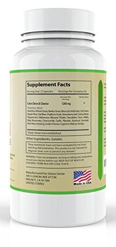 -. Binding : Health and Beauty -. Brand : Detox Genie -. EAN : 0646437149525 -. Feature : PROMOTES HEALTHY DIGESTIVE SYSTEM: This product is not just any old detox on the market but a naturopathic combination of 3 pure natural organic herbal formulas and 29+ EFFECTIVE INGREDIENTS in one capsule with triple action to flush the colon gently and promote the balance of the Digestive System. Detox and cleanse your body and feel energised and revived in as little as 15 days with Detox Genie Colon Detox and Cleanse Dietary Supplement Capsules. / REMOVES HARMFUL TOXINS: Elimination of Toxins which are the main cause of fatigue and build up in the intestinal tract over time will increase energy levels substantially and strengthen the immune system. Formulated to entirely detoxify your body and gently cleanse your colon of all nasty toxins that have built up over time, ensuring that your colon always functions at maximum capacity. You could experience upto 10lbs weight loss on this 15 day program as the body eliminates toxins and waste. / ACHIEVE A FLAT TUMMY AND SLIMMER BODY MASS: The balance obtained with our colon cleanse detox improves the enzymes and waste in the colon, as well as cleansing of the cells, which will improve the absorption of nutrients, producing a thinner and stronger body mass and flat belly. Regular exercise and a healthy eating plan will help you achieve maximum results with this Detox Cleanse. . Detox Genie are the only authorised seller of this brand. Kosher and Halal Certified. / RELIEVE CONSTIPATION: Promotes the pH balance in the intestinal track by eliminating constipation and fermented colon, promoting healthy friendly bacteria for regular bowel movement. Removes that uncomfortable heavy bloated feeling. Gentle colon flush without the laxative effect as you may have experienced with other competitors products. 100's of customers can't be wrong, check our REAL customer reviews such as "very gentle on the system, not harsh like some products I've used" & "THE BEST" / WITH ADDED BENEFIT OF ALFALFA: may help normalise cholesterol levels and is known as an anti-inflammatory to reduce joint pain. The herbal formula is also designed to promote proper bile flow through the duodenum, in conjunction with the pancreas to properly digest proteins, carbohydrates and fats. The liver can be damaged by chemicals added to the food and water we consume which leads to destruction of vital vitamins and minerals required for detoxification of pathways in the liver. -. IsAutographed : 0 -. Label : Detox Genie -. Manufacturer : Detox Genie -. ProductGroup : Health and Beauty -. ProductTypeName : HEALTH_PERSONAL_CARE -. Publisher : Detox Genie -. Studio : Detox Genie -. Title : Best Colon Detox & Cleanse Pills for Premium Weight Loss & Digestive System Health & Flush Toxins Metabolism Booster for Men & Women 60 Natural Ingredient Capsules 1200 Per Serving -. UPC : 646437149525