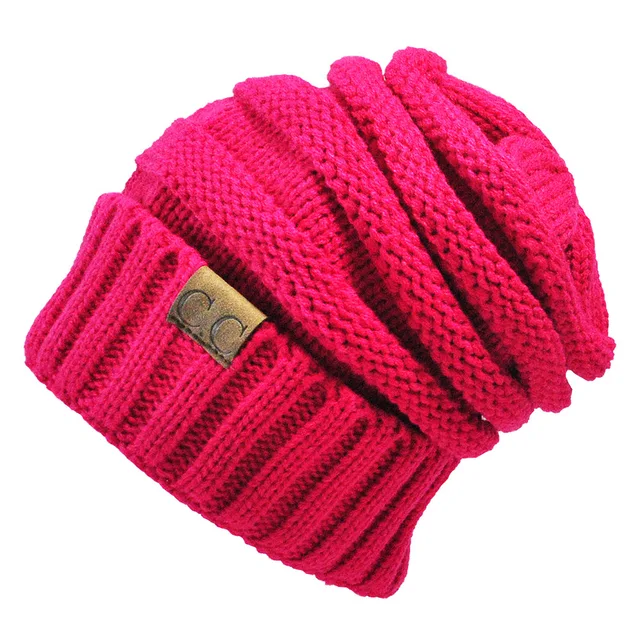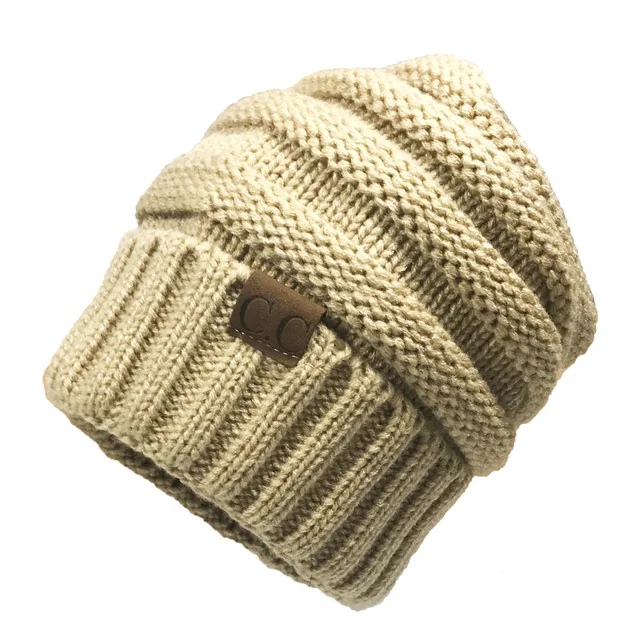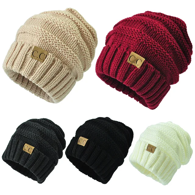 | [해외]여성 남성 겨울 니트 울 캡 남녀 주름 캐주얼 CC 라벨 비니 모자 단색 힙합 Skullies 비니 모자 Gorros |