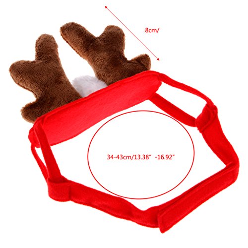 -. Feature : Material: Plush. / Size: app.43cmx8cm/16.93''x3.15''. / Adjustable range: 34-40cm/13.39''-15.75''. / Style: Christmas style.Main Color: Brown+Red. / Stuffed antlers on elastic headband,made of soft plush fabric won't irritate pets skin.