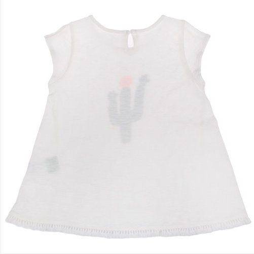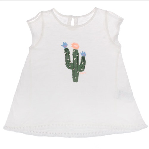 사이즈-110,120,130,145,155상세설명-가슴에 선인장 나염이 유니크하게 귀여움을 주는 티셔츠로, 살짝 롱한 기장감으로 밑단에 태슬 레이스가 멋스러운 스타일입니다.