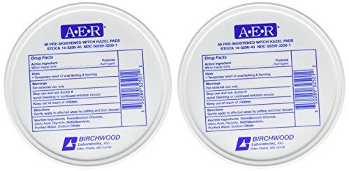 BIRCHWOOD LABORATORIES A-E-R Pre-Moistened Witch Hazel Pads, 80 Count