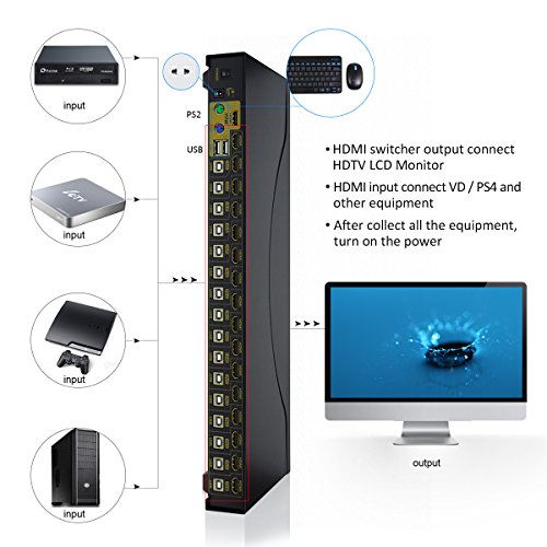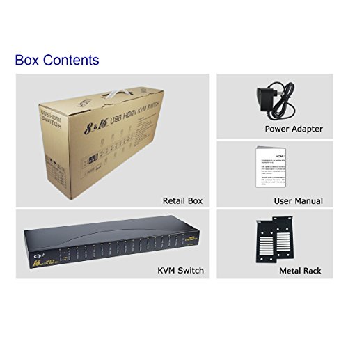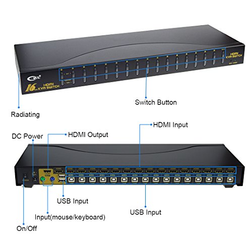 HDMI KVM Switch - 16 Port HDMI PC Monitor Keyboard Mouse Switcher Support 3D 1080P Auto Scan by Sea Wit