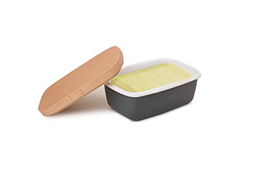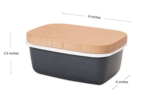 Studio : GA Homefavor Publisher : GA Homefavor Binding : Kitchen Product Description - Are you looking for a appropriate storing box for your butter in your kitchen? - Now this exquisite butter box can keep your butter properly. - Design with elegant retro style. - Perfect container for your butter,cheese or any other essentials of kitchen. Size: 6 X 3.9 X 2.5 inches Box Material: Enamel. Lid Material:Wood Weight: 0.9 pound. Care and Cleaning: Hand Wash Only and dry in cool ventilated place. 0