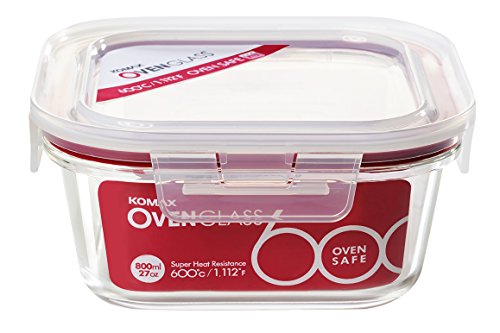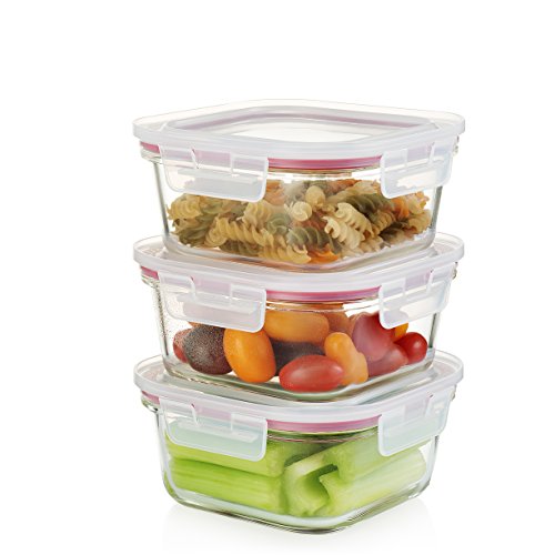 Komax Oven Safe Square Glass Food Storage Containers – Microwave & Freezer Safe - Airtight with Snap Locking Lids - 3 Piece Set - BPA FREE (27 oz)
