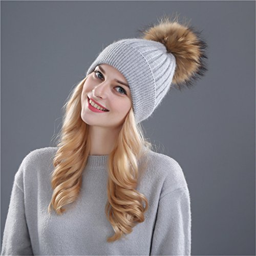 | (Sariffy)/Accessories/Cold Weather Accessories/DIRECT FROM USA/winter hat for women wool knitting hat beanies 15cm mink fur pom poms Shiny Rhinestone hat Skul... |