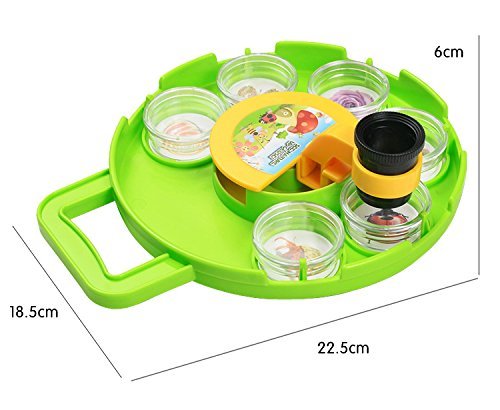 Size :22. 5x 18. 5 x 6cm ,materail :high quality and abs, content: base*1 + collect box *6 +microscope*1.