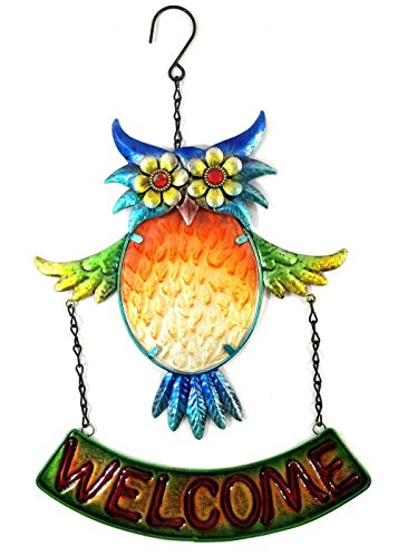 Bejeweled Display® Beautiful Multicolored Owl w/ Stained Glass Welcome Sign