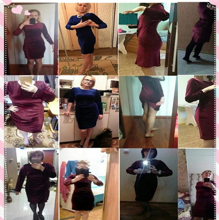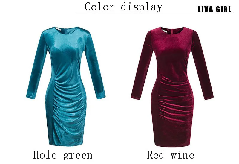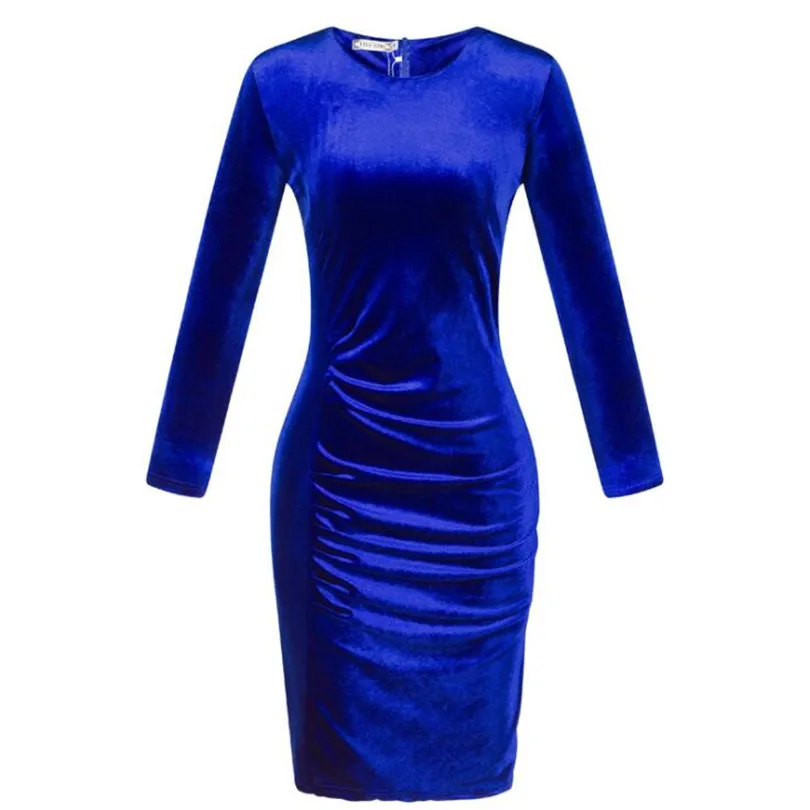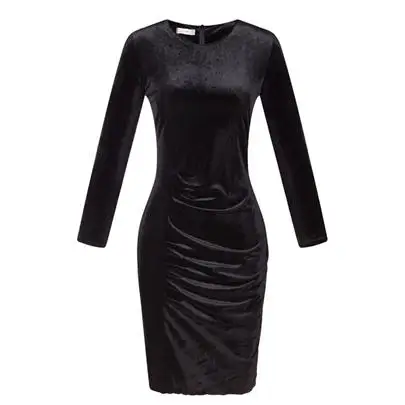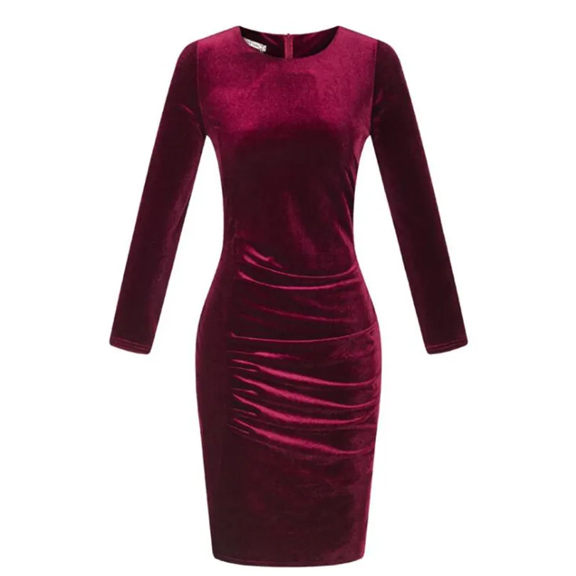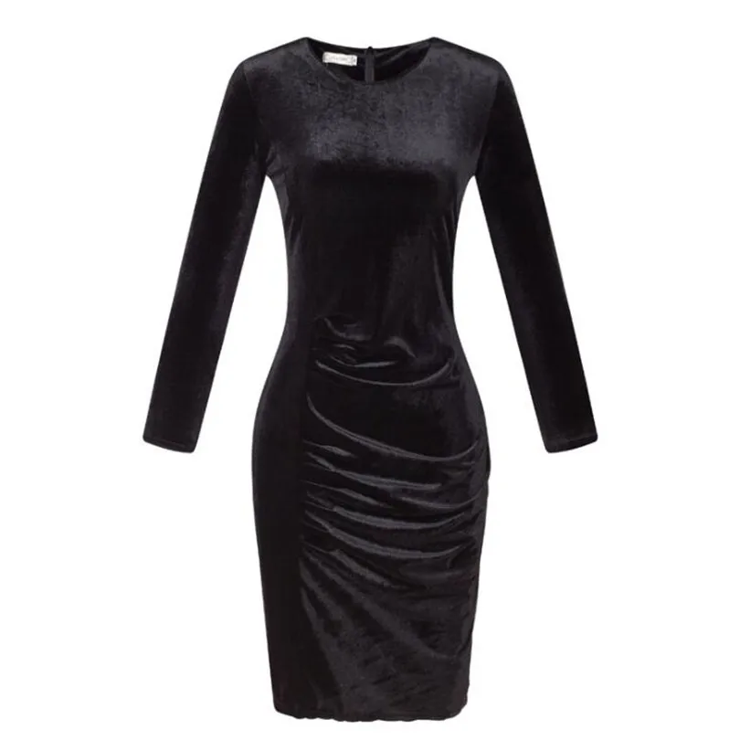 Long Sleeve Bodycon Pack Hip Dress:2018 Spring Summer Velvet Dress