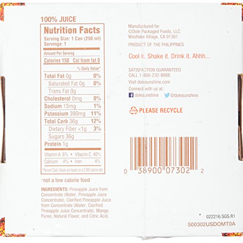 Dole Jaya Juice, Pineapple/Mango, 4 Count (Pack of 6)