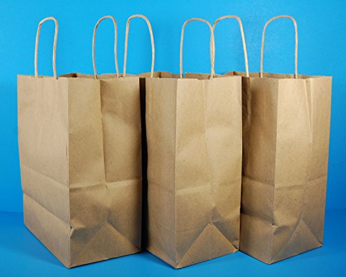 Small Brown Paper Shopping Bags with Handle, 25 Count, 8 X 4-1/2 X 10 Inches Tall
