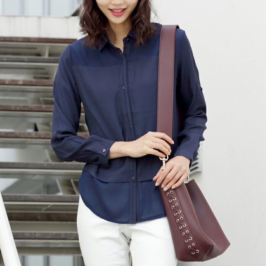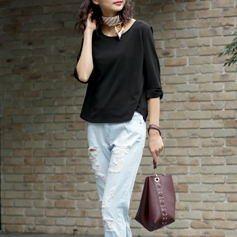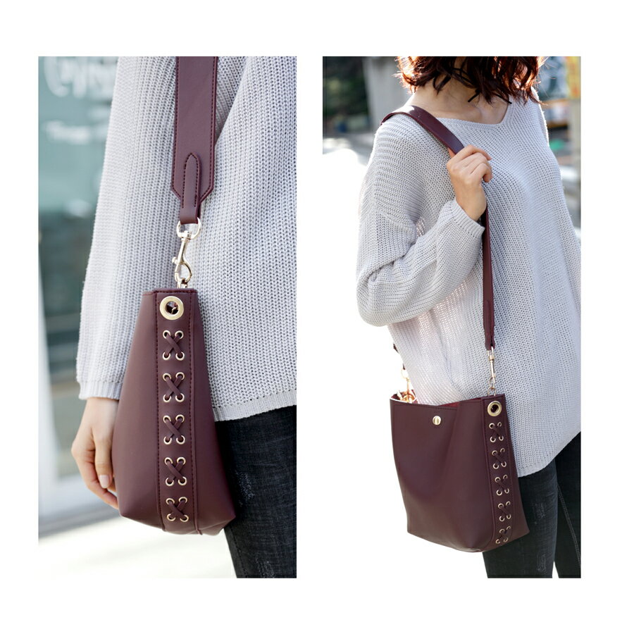 太幅のショルダーベルトを付ければ、肩がけバッグとしてエレガントな装いに。