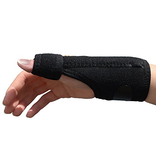 Interchangeable right or left hand fit. One-size really does fit all. Adjustable tension control at thumb and wrist. Suitable for carpal tunnel syndrome although not for conditions where the thumb must be completely immobilised.