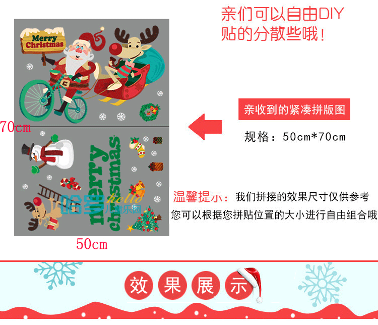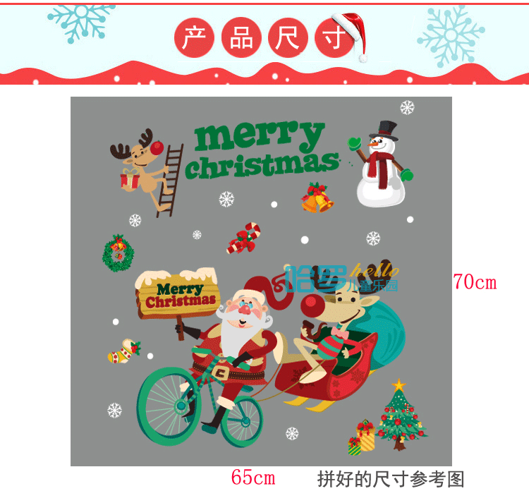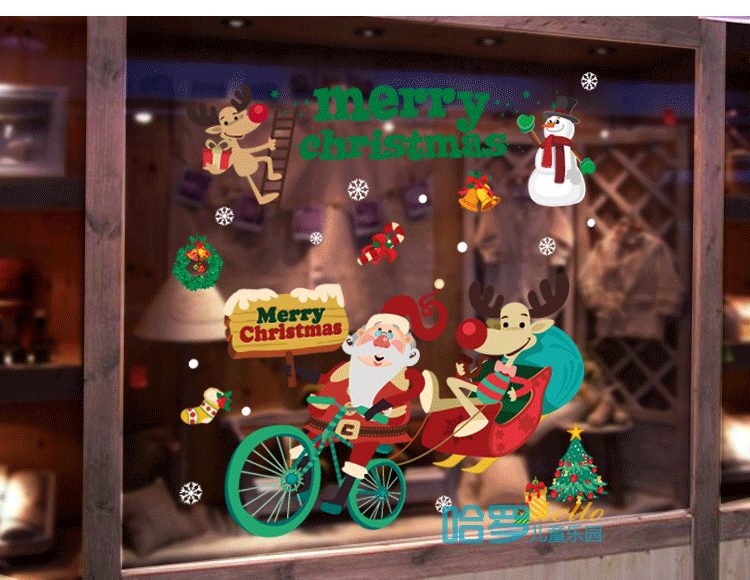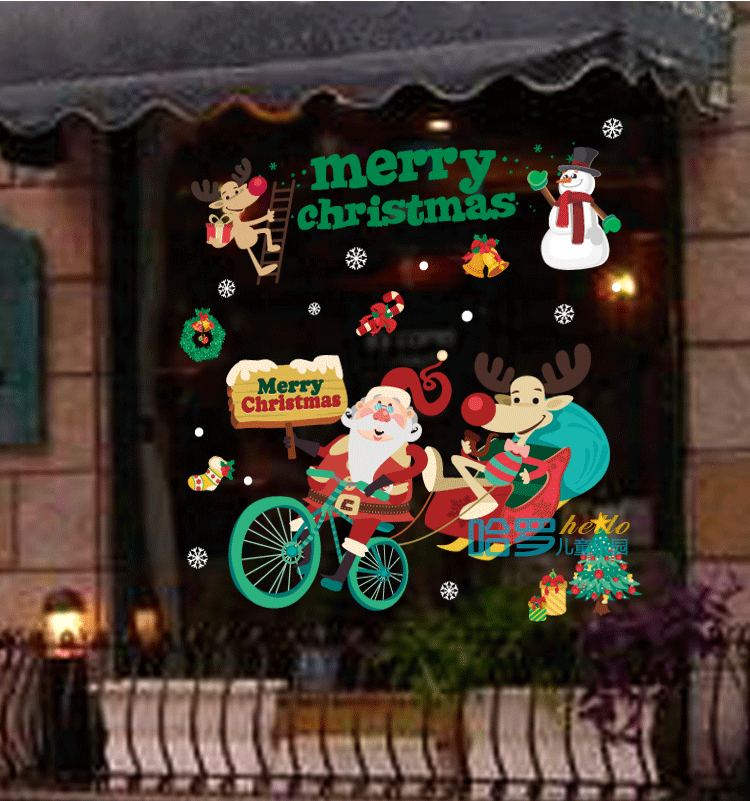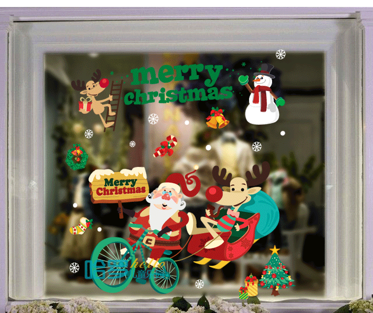 圣诞节日气氛装饰品橱窗贴玻璃静电贴卡通圣诞老人圣诞树铃铛麋鹿