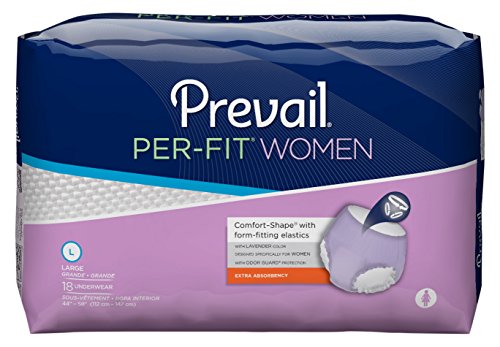 Designed for extra leakage protection, Prevail Per-Fit Underwear features Comfort-Shape Plus with gentle elastics that shape to your body for a more comfortable and discreet fit than standard adult diapers. The cloth-like outer cover is soft and comfortable for all-day wear while ventilated waist panels allow air to pass through, reducing heat buildup and promoting healthy skin.