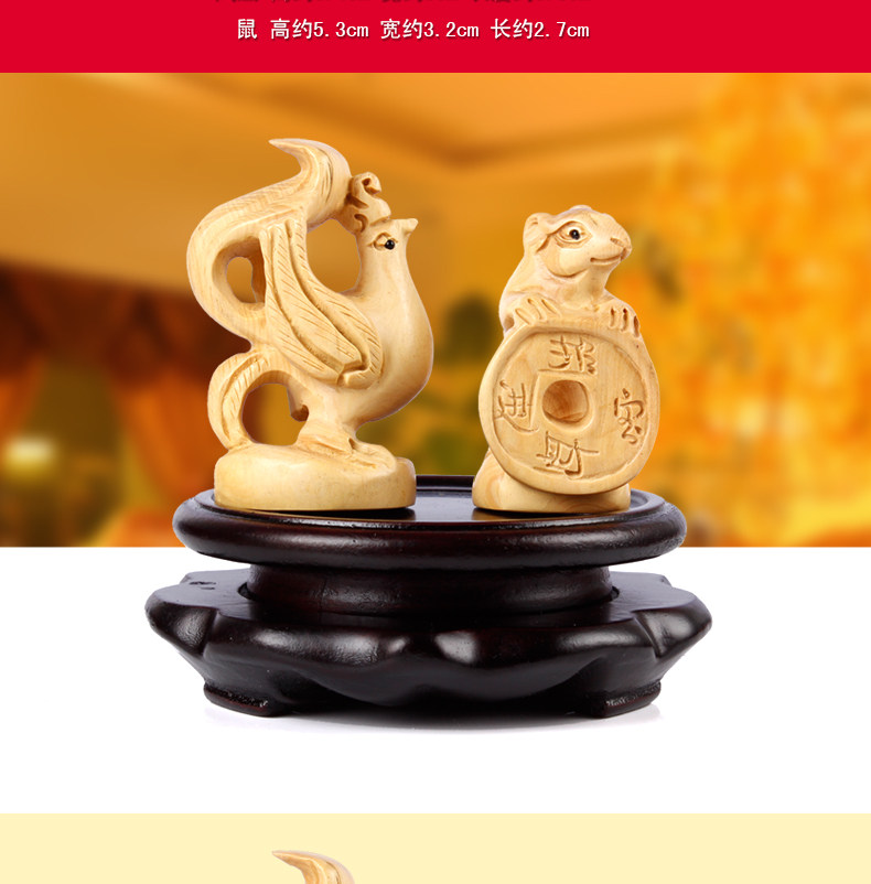 喜鼠聚宝黄杨木居家摆件十二生肖属牛吉祥物工艺饰品