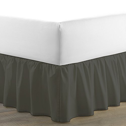STOCK CLEARANCE SALE 50% LOW PRICES BED SKIRT Hypoallergenic Luxurious 600 Thread Count 100% Egyptian Cotton Bed Skirt with 15 inch drop Solid (Dust Ruffle Bed Skirt) (Grey, King)