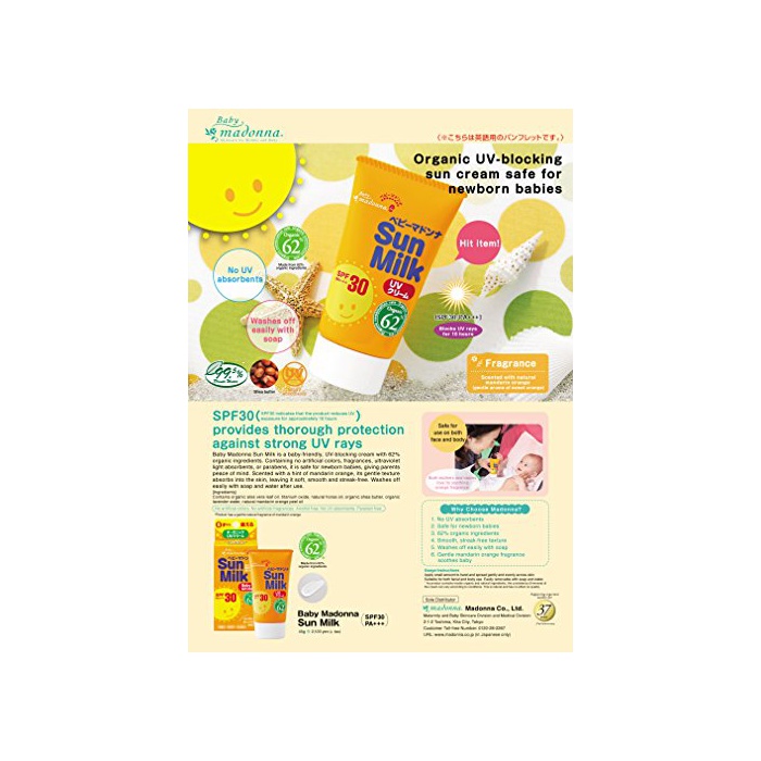 원본상품명: ベビ?マドンナサンミルク 45g(オ?ガニック62%配合UVクリ?ム)