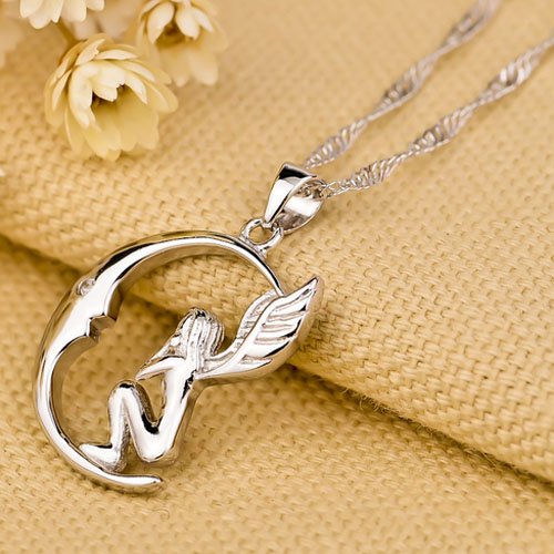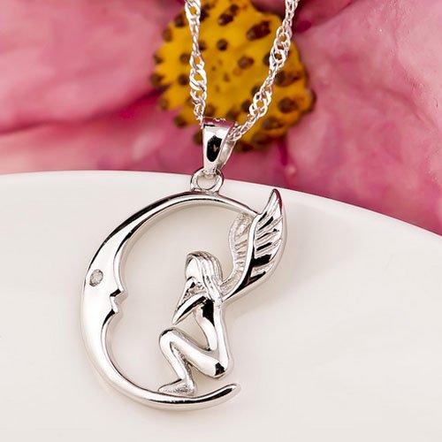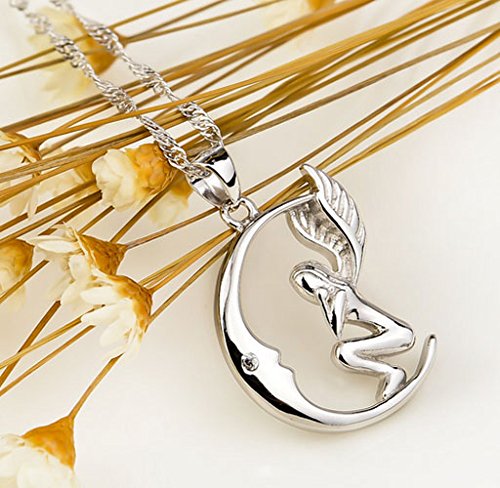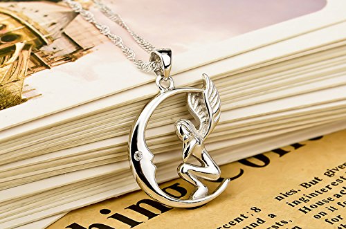 -. Title : Sterling Silver Moon Angel Necklace Pendant Quote "Soul sister friend for life" Cubic Zirconia 18"
