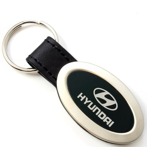 -. Title : Genuine Black Leather Oval Silver Hyundai Logo Key Chain Fob Ring
