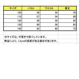 130cmはバスト約60cm/着丈約65cm、140cmはバスト約65cm/着丈約70cm、1〜2cmの誤差はご了承ください。