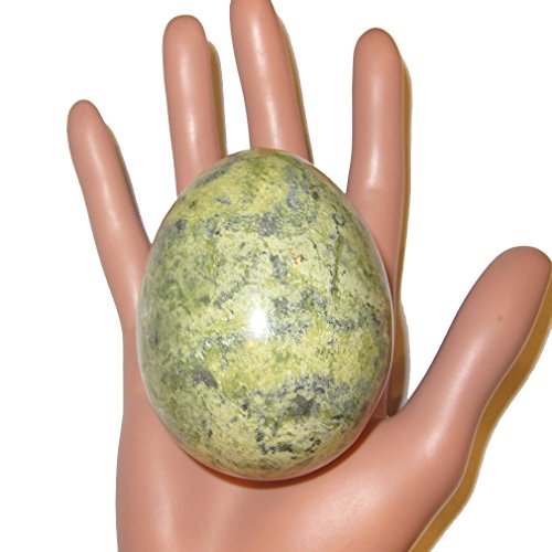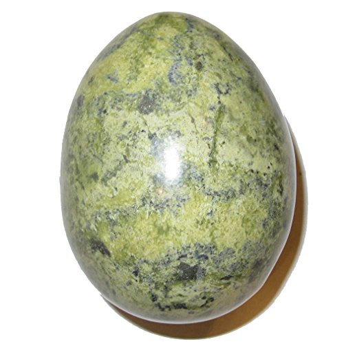 Your egg is made from Serpentine crystal. It is a bold and pleasing green with serpent-like patterns and pyrite inclusions. While smooth and polished, your egg retains natural lines and grooves characteristic of genuine gemstones. The egg can be held in hand for healing energy or displayed proudly. Receive this exact stone pictured when you order from Satin Crystals.
