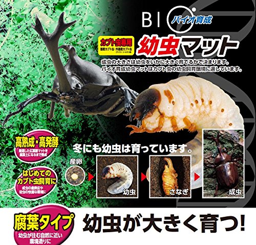 高熟成・高発酵!はじめてのカブト虫飼育に最適!成虫の大きさは幼虫をいかに大きく育てるかで決まります。バイオ育成幼虫マットはカブト虫の幼虫飼育環境に適しています。