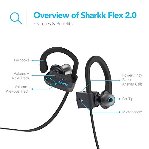 -. Binding : Wireless Phone Accessory -. Brand : SHARKK -. EAN : 0712038086559 -. Feature : Wireless Headphones that are light and comfortable with a smooth, flexible ergonomic design. Basically your Perfect Earbuds / IP67 Rated Waterproof Headphones with high quality digital sound through Bluetooth 4.1 technology and a pairing range of up to 30 feet. Again, your perfect wireless earbuds / TOP LEVEL TECHNOLOGY: Enhanced and advanced 4.1 Echo elimination technology creates a crisp, beautiful and clear sound. You see the theme here, your perfect Sport headphones / SPORT HEADPHONES THAT LAST: Rechargeable 85mAh battery provides 6-8 hours of continuous play time. No more changing your headphone during workouts / USE YOUR BLUETOOTH SPORT EARBUDS ANYWHERE: Android and iPhone compatible headphones with voice prompts and microphone for incoming calls. -. Label : Bluetooth Headphones -. Manufacturer : Bluetooth Headphones -. Model : Sport Headphones -. MPN : 6839596 -. PackageQuantity : 1 -. PartNumber : 6839596 -. ProductGroup : Wireless -. ProductTypeName : WIRELESS_ACCESSORY -. Publisher : Bluetooth Headphones -. Studio : Bluetooth Headphones -. Title : UPGRADED SHARKK Flex 2o Bluetooth Headphones Wireless IP67 Sweatproof Waterproof Sport Earbuds with Mic -. UPC : 712038086559