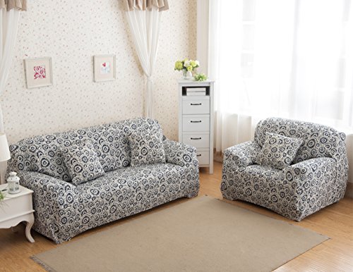 92-percent polyester 8-percent spandex all-inclusive Printed Stretch Slipcover. Printed sofa slipcover fits sofa size 74.8-90.55in (190-230cm) 2.6lb 1.15kg