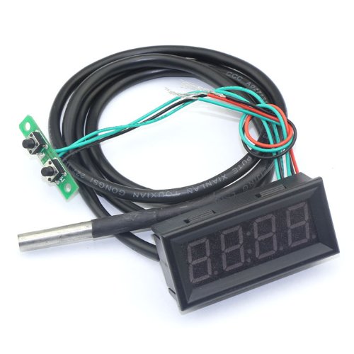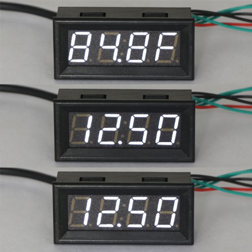 DROK 12 Volt DC Car Digital Electric Clock Fahrenheit °F Temperature Voltage Measurement White LED Gauge Panel Meter 18B20 Sensor Probe