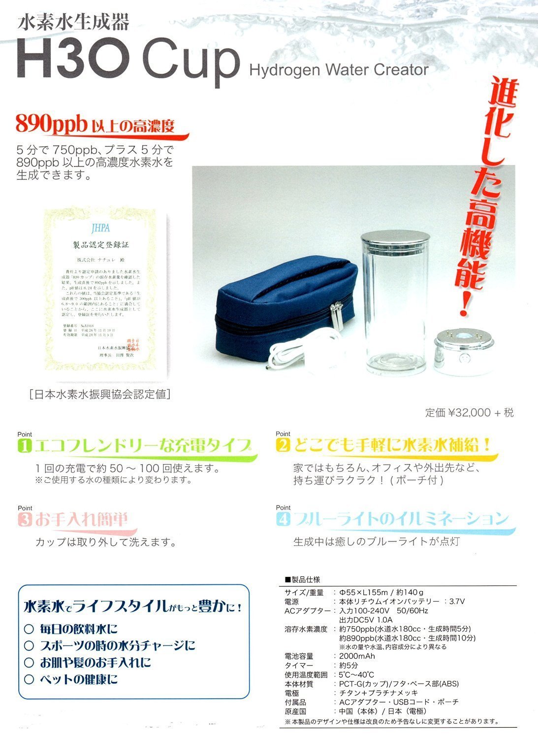 Japan Health and Beauty - Portable high concentration popularity of the hydrogen generator H3O cup II *AF27*