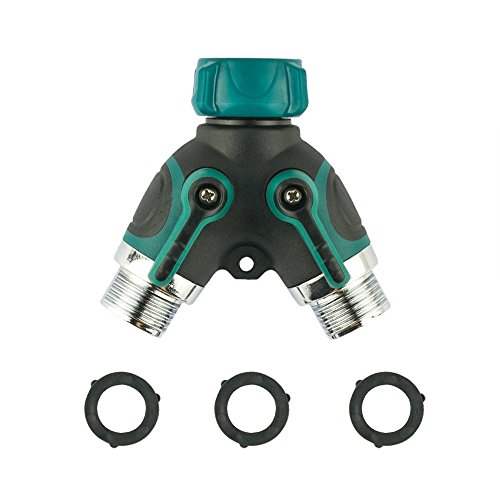 2 Way Hose Connector Sorobright Garden Hose Splitter with Shut off Valve Rubberized Comfort Grip + 3pcs Rubber Washers