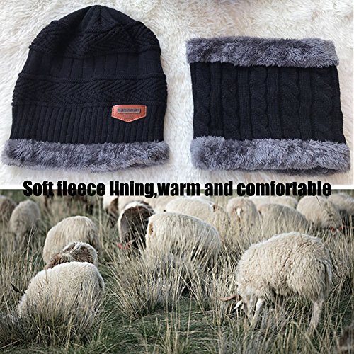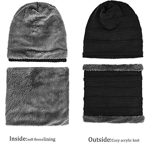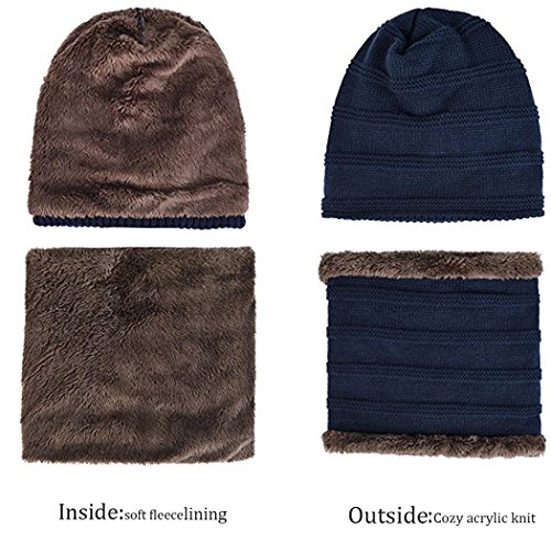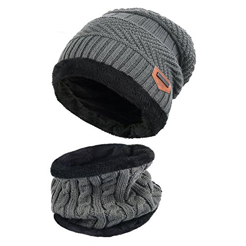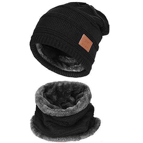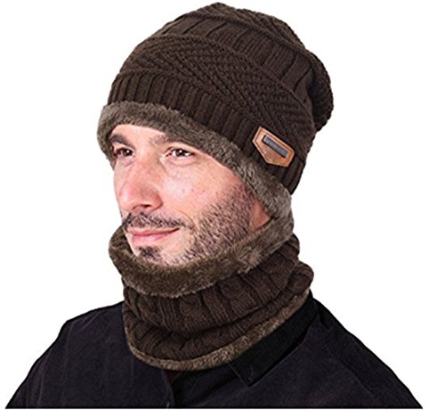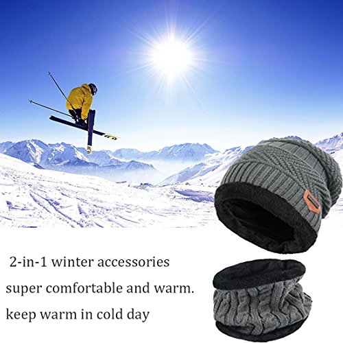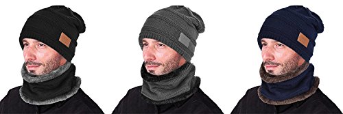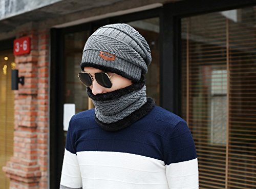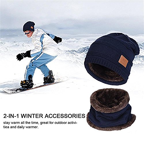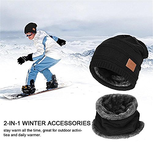 Goodbuy Warm Knitted Hat, Winter Beanie Hat Men with Circle Scarf for Ski
