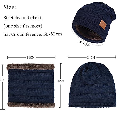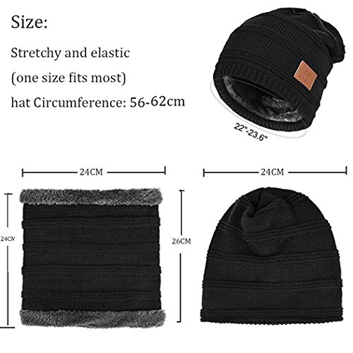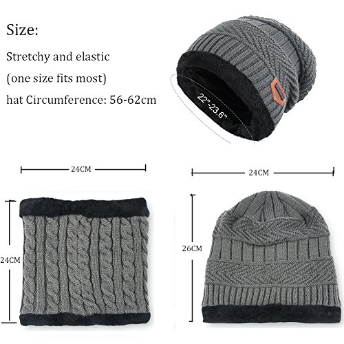 Product DescriptionFeature Material: Acrylic knit fleece lining Gender: men Season: autumn and winter Size: hat 10.2'*9.8'(L*W); scarf 9.4'*8.7'(L*W) Circumference: 22'-23.6'(one size fits most) Package list: 1× beanie hat 1× scarf0