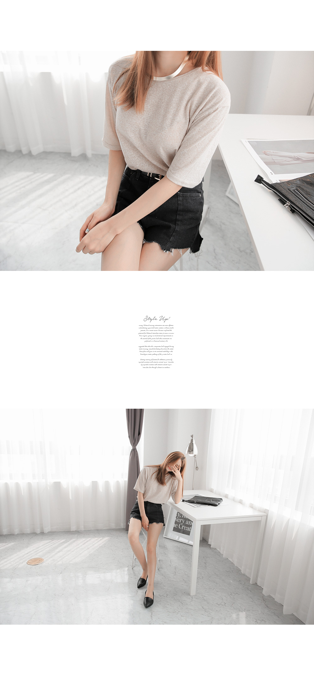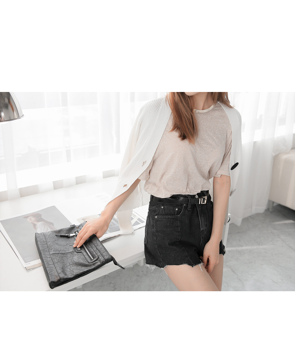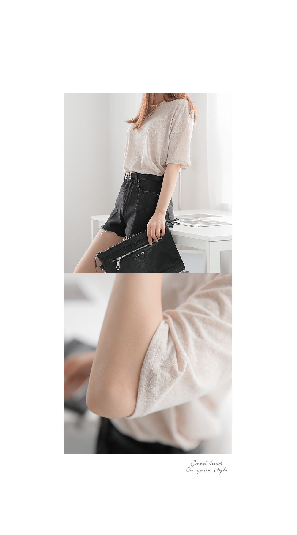 원단 자체에 살짝 포인트를 준 베이직 라인의 티셔츠에요.