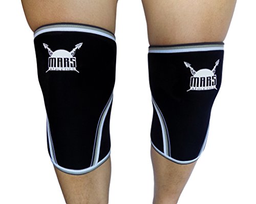 -. Feature : High quality 7 millimeter neoprene compression maximizes knee support during intense workouts / Reduce pain, risk of injury and lift heavier; great for squats, deadlifts, powerlifts, running / For both beginners and seasoned athletes looking to boost their workouts, reduce knee pain or injury risk / 1 pair of knee sleeves - consult sizing chart for best fit - bonus Mars Athletics gymsack included / Try them risk free for 60 days 100% no-hassle money back guarantee